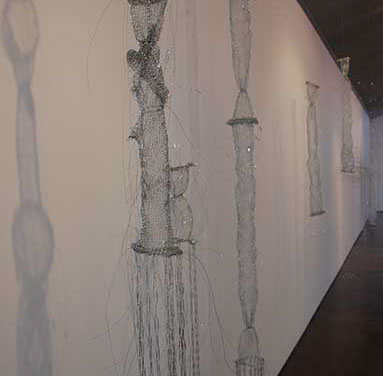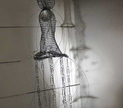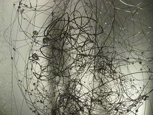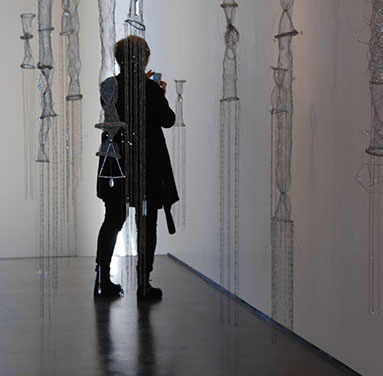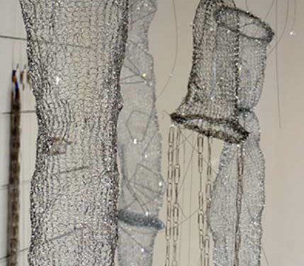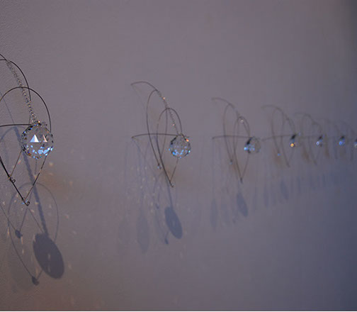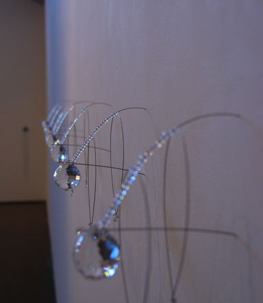As an artist I have become increasingly interested in ethereal structures that inhabit space, and hover between something and nothing. I have developed this body of work since early 2010 and have used stainless steel, tarnish proof silver coated copper wire, various metal threads, Swarovski crystal, quartz, glass, acrylic, elastic, plastic, Japanese copolymers and found metal objects.