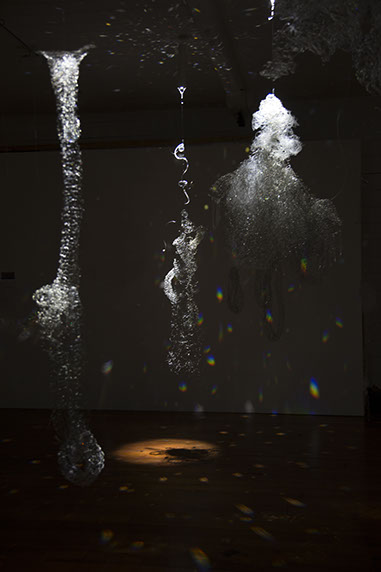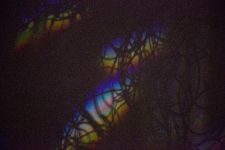 Lucent is an experiential installation that invites viewers to navigate through darkness into light. Transparent sculptural forms float, rotate, and oscillate with the displacement of air, refracting tiny shards of rainbow lights onto surrounding surfaces. Three years in the making, Lucent will engage and mesmerize the viewer offering a brief respite from the external world.