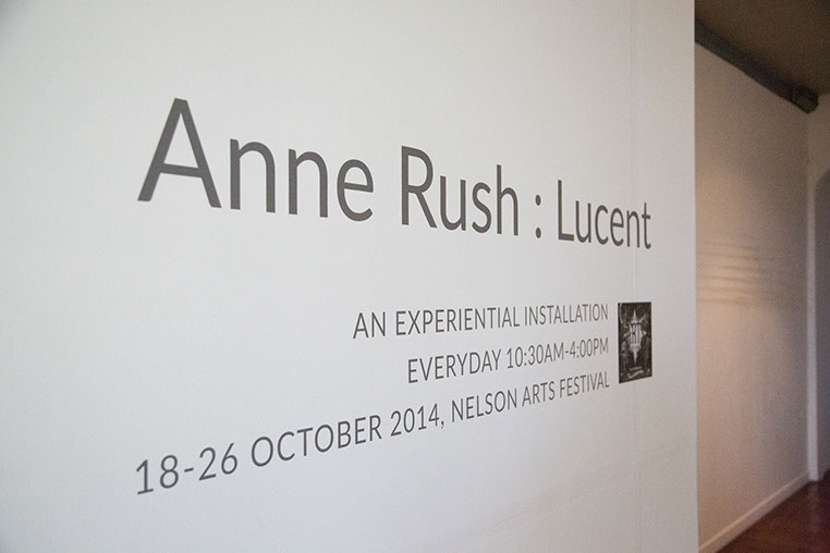 Sited in the artist’s large adaptable studio space, and the upstairs foyer of the historic Arthouse Architecture building, this Nelson Arts Festival showing is the premiere showing of the completed Lucent installation.