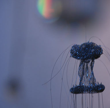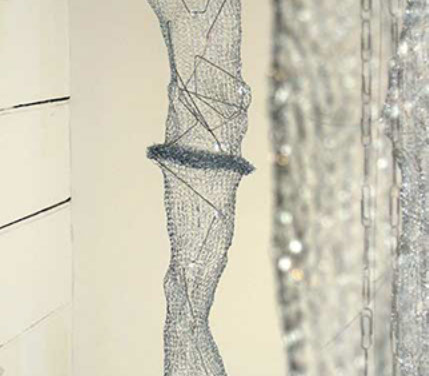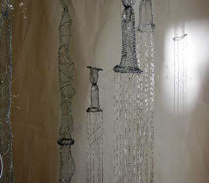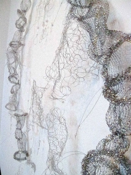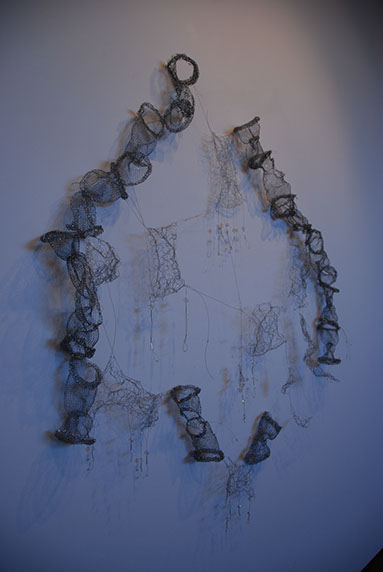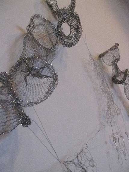 As an artist I have become increasingly interested in ethereal structures that inhabit space, and hover between something and nothing. I have developed this body of work since early 2010 and have used stainless steel, tarnish proof silver coated copper wire, various metal threads, Swarovski crystal, quartz, glass, acrylic, elastic, plastic, Japanese copolymers and found metal objects.